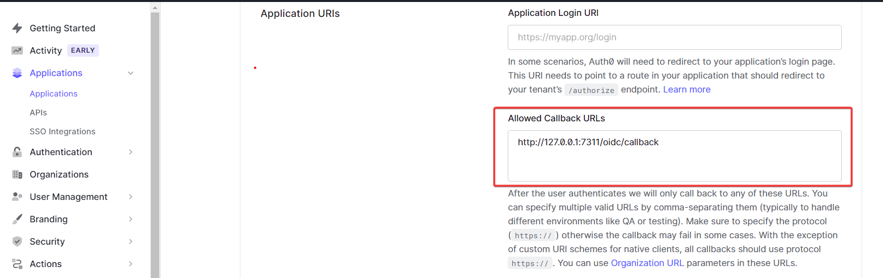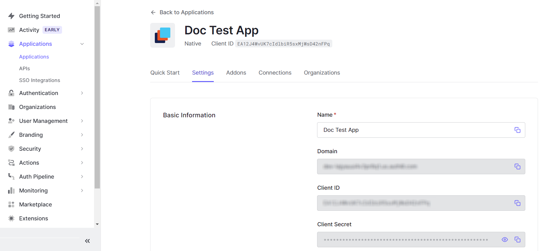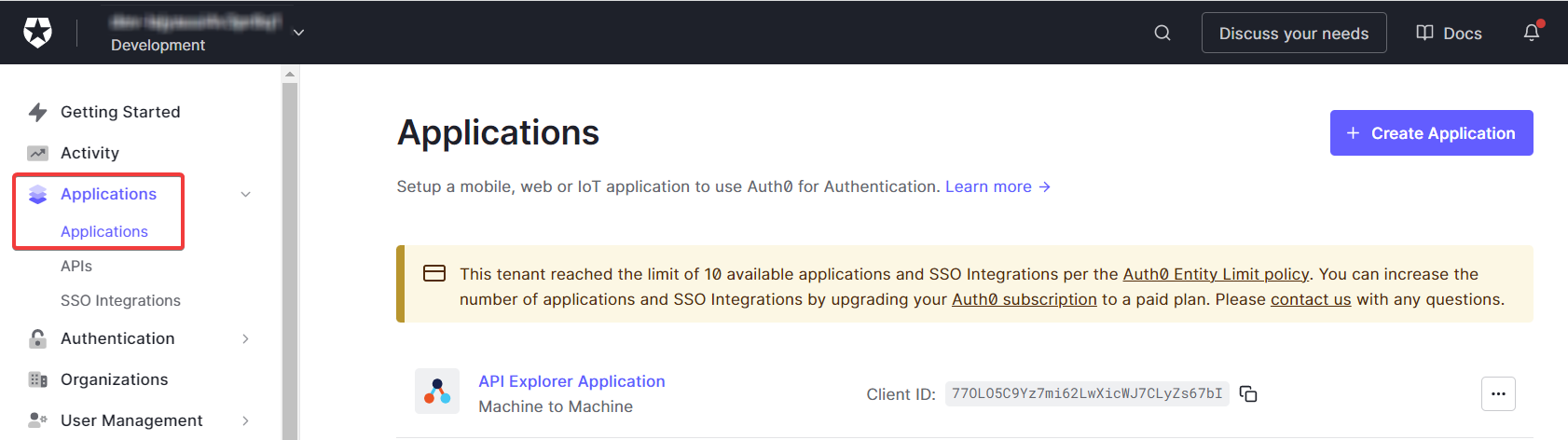 Log in to Auth0 identity platform and navigate to Applications > Applications .