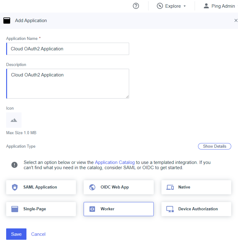 To set up authentication and group synchronization with the PingID provider, you must create an OAuth2 Worker application in your PingID environment: