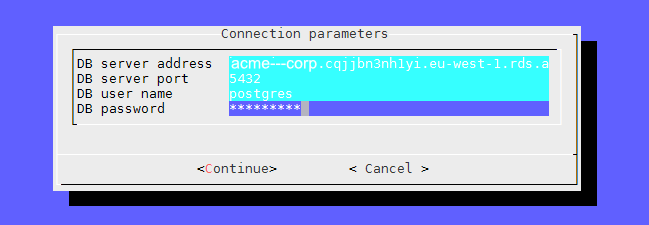 In this example we have configured a Postgresql database cluster in Amazon’s RDS service. Any database service, such as Microsoft’s Azure Database for PostgreSQL or a manually configured external database could be used.