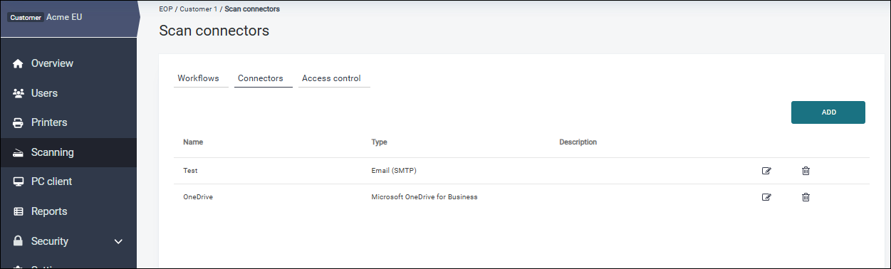 To create a connector or edit an existing connector, log in to SAFEQ Cloud Web UI and go to Scanning > Connectors.