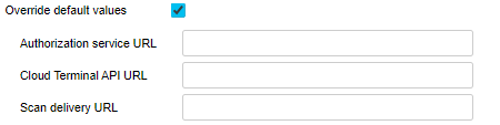 In case of a non-standard deployment (for example, a proxy is used), check the Override default values checkbox and fill in all properties.