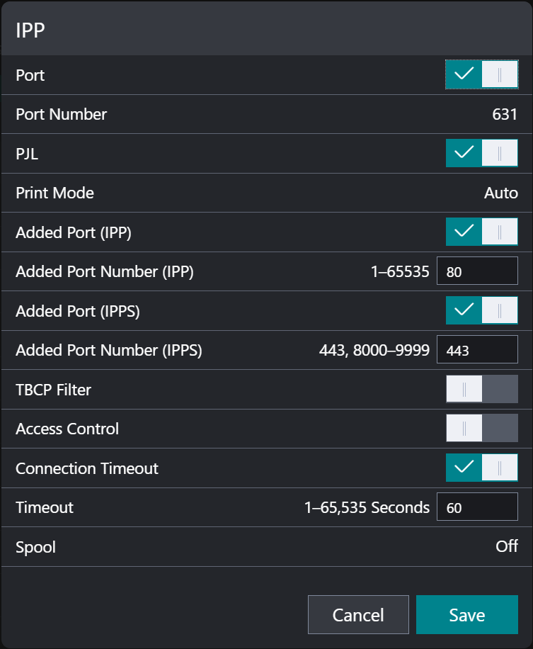 IPP – To receive print jobs via IPP/IPPS, IPP must be enabled.