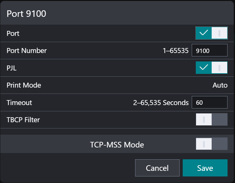 Port 9100 – To receive print jobs via TCP/IP RAW, Port 9100 must be enabled.