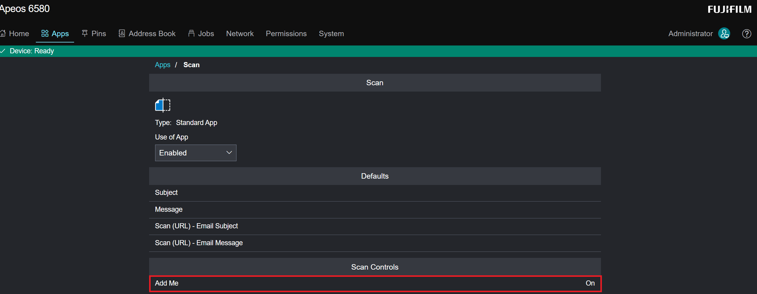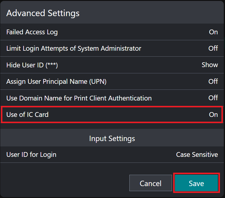 For ApeosPort devices, set Use of Smart Card to On and click Save.