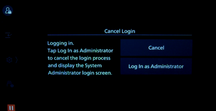 To change settings and configure the device, you can log in as a machine administrator from the authentication screen or device code flow screen or error screens that can appear instead of the authentication screen.