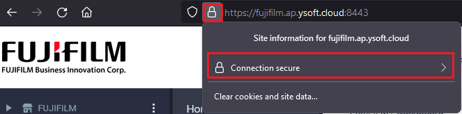 FUJIFILM BI devices come with a pre-installed list of globally trusted Certification Authorities. However Let'sEncrypt authority used as a default authority for SAFEQ Cloud servers is not included.