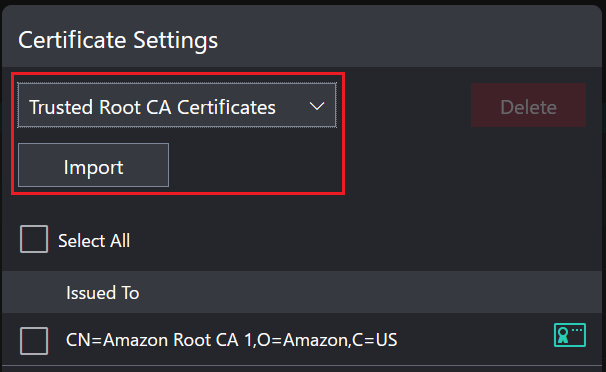 To secure the communication between the server and MFD/SFD by certificate validation, you must import the relevant certificate authorities into the device, and enable server certificate validation.