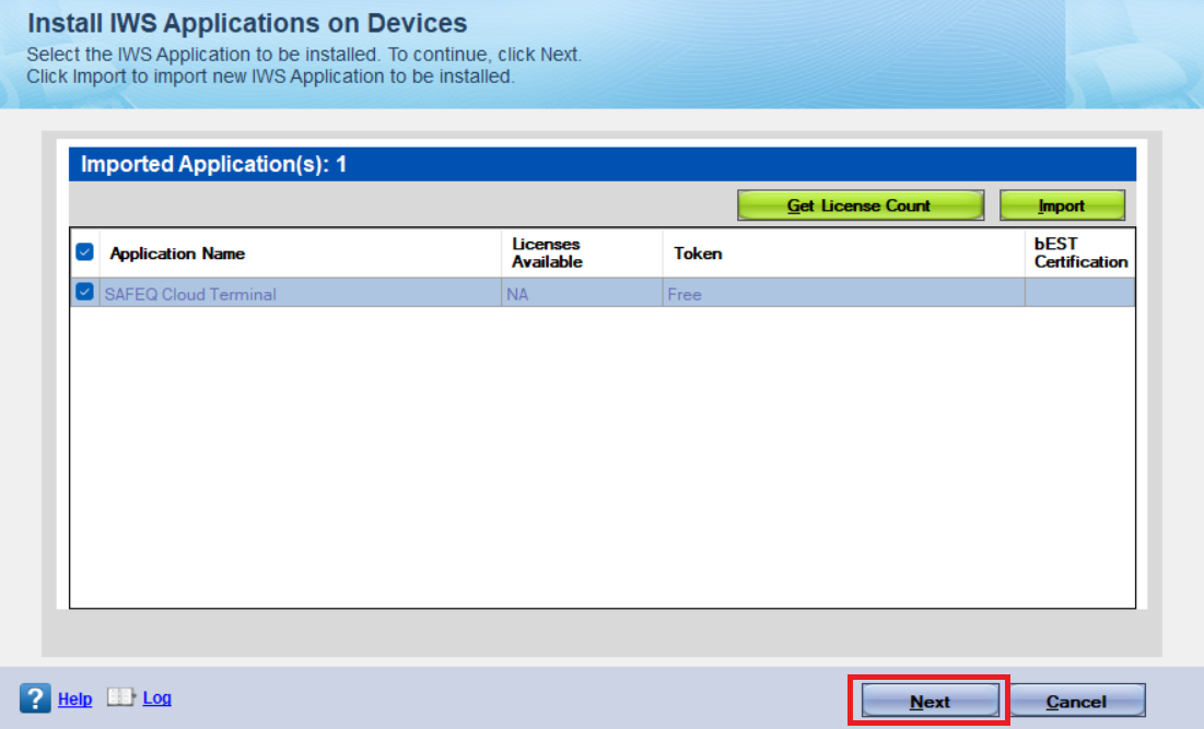 Select the imported SAFEQ Cloud Terminal application and click Next.