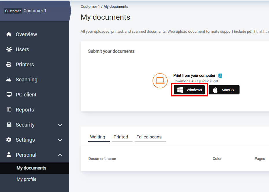 SAFEQ Cloud Client installer can be downloaded from SAFEQ Cloud Web UI.