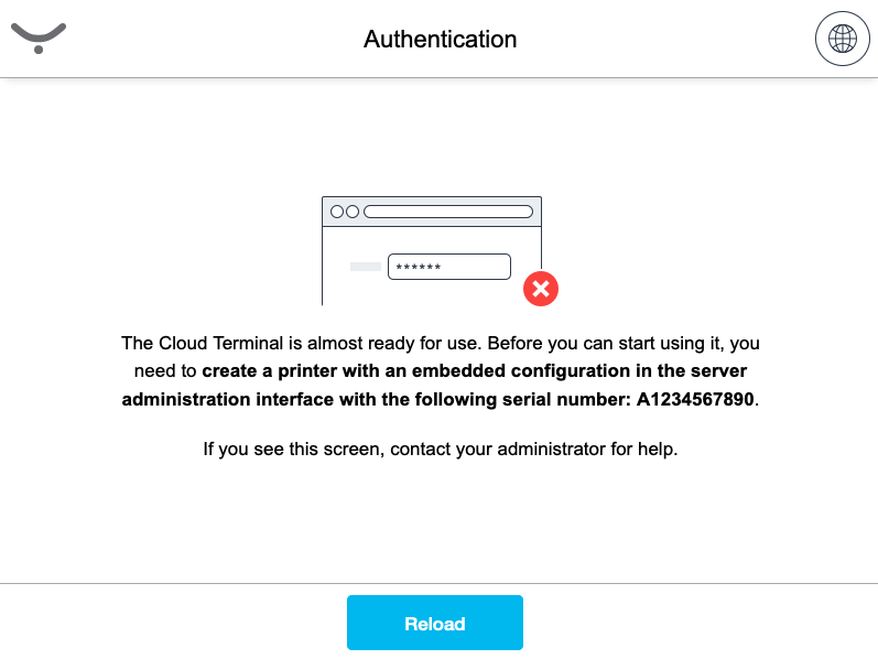 If you see "Device has not been registered to SAFEQ Cloud yet" message too often on your MFDs, this will be resolved after the update of SAFEQ Cloud to version 3.45 and the update of the Cloud Terminal to version 2024.06.02. Once you register your MFDs with the Cloud Terminal in SAFEQ Cloud again (see the Registering the Cloud Terminal in the SAFEQ Cloud Web UI section of this document), the terminals will be able to automatically re-register themselves in SAFEQ Cloud.