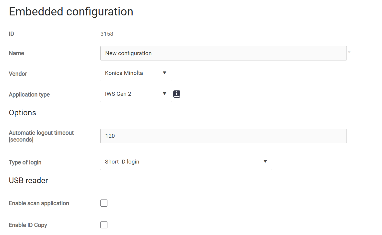 In Embedded configuration, select your Konica Minolta embedded configuration from the list.
