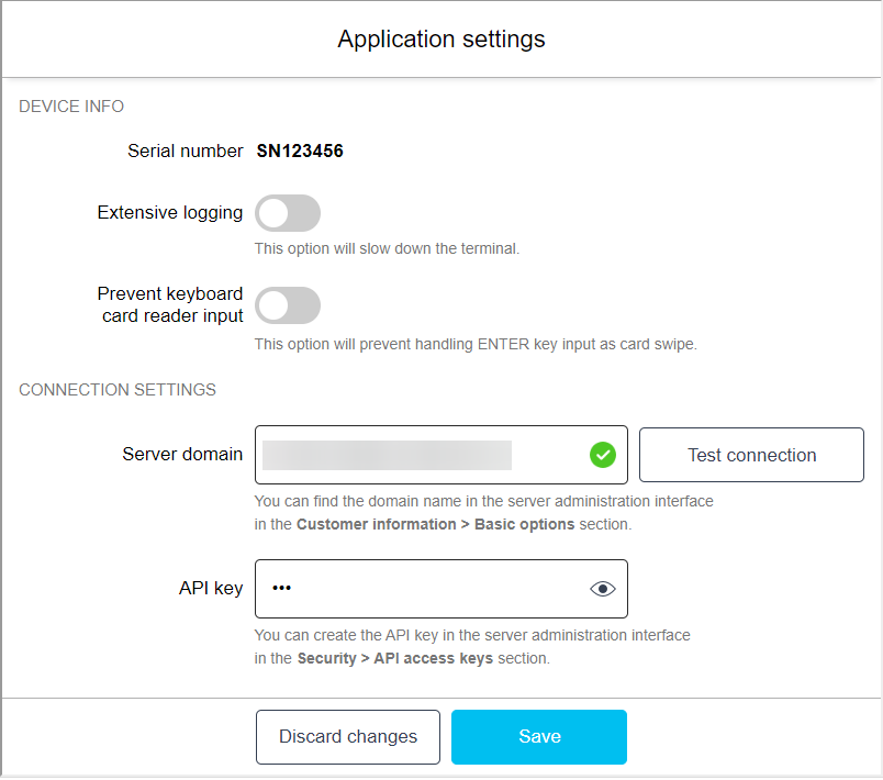 Fill in the rest of the configuration according to your needs and click Save. For more information on embedded configuration, see Embedded Terminals' configuration.