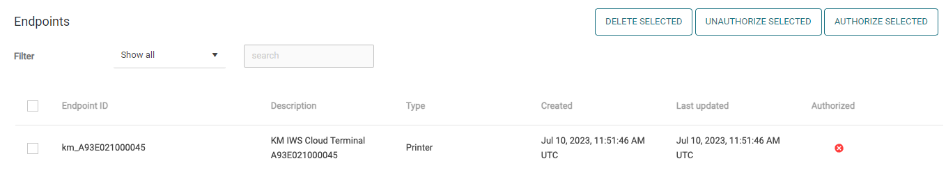 In SAFEQ Cloud web UI, go to Security > Endpoints and find the entry that contains the endpoint ID from the previous step.