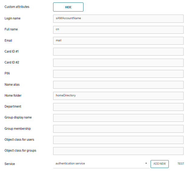 Custom attributes – Expand custom attributes to change the LDAP attributes in which username, card ID’s, ShortID’s and similar are stored.