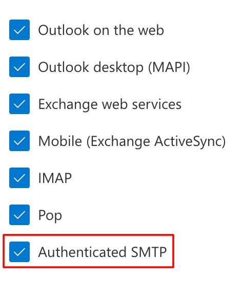 For the correct behavior of sending emails, the user who authorizes the configuration through the Microsoft authorization flow has to have enabled the Authenticated SMTP setting in the Microsoft 365 admin center; otherwise, the sending of emails will not work even if the configuration is authorized.