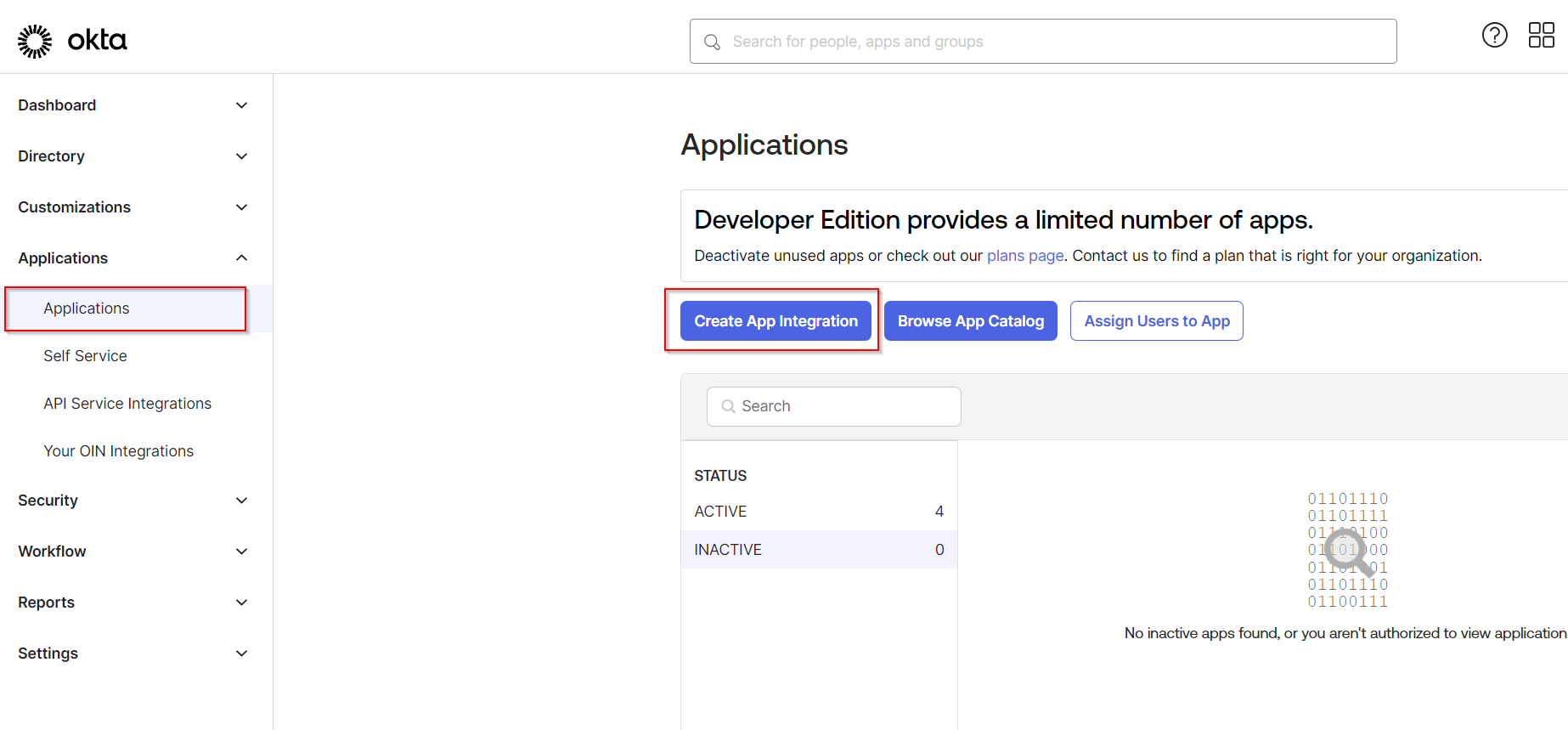Log in to OKTA administration UI and go to Applications. Click Create App Integration.