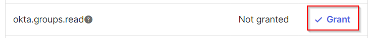 Navigate to Okta API Scopes tab. Find the okta.users.read and okta.groups.read consents. Click Grant.