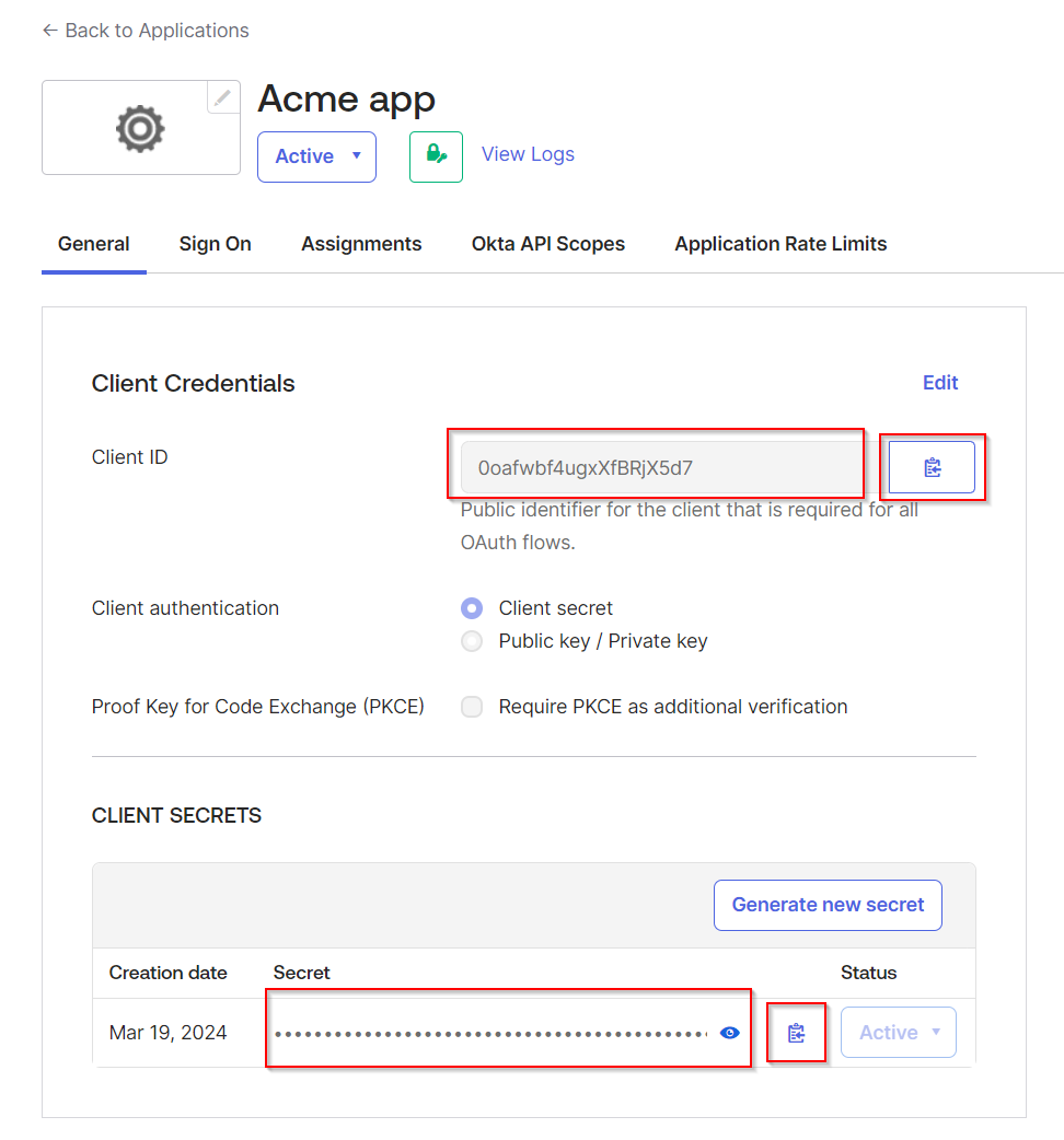 Navigate to the General tab, and copy the Client ID and Client secret values. You will need them later on.