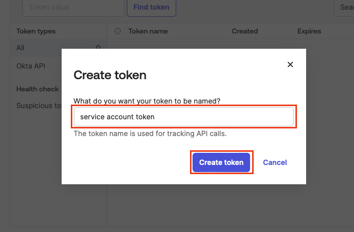 Enter the name of your token and click Create token.