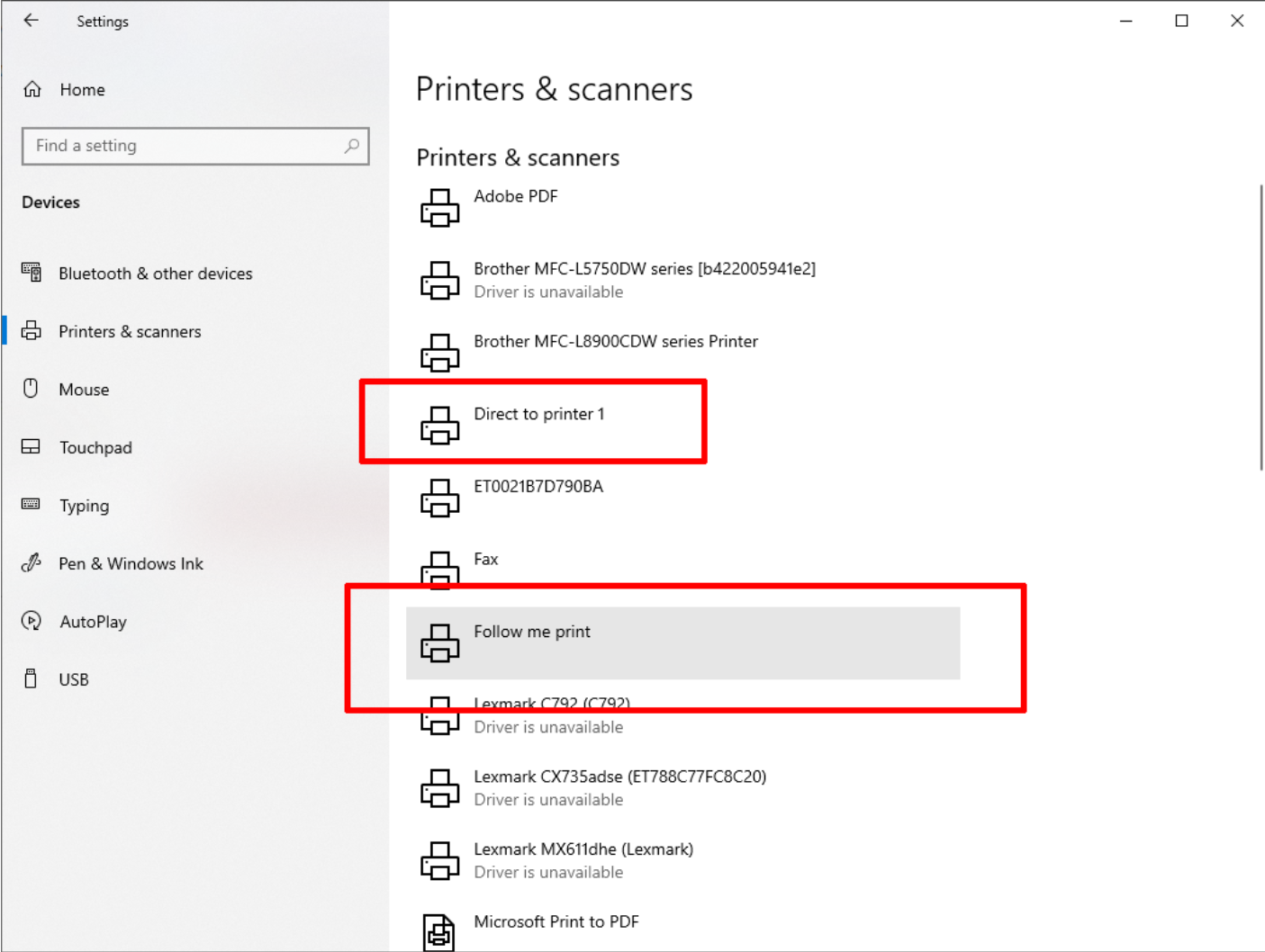 After you log in, the print queues you created in SAFEQ Cloud Web UI will be synchronized and visible in your Printers and scanners.