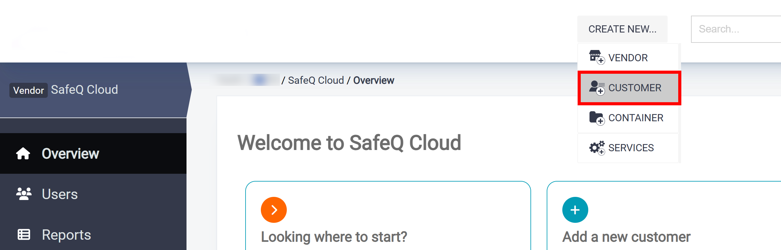 Log in to SAFEQ Cloud web UI using your vendor account.