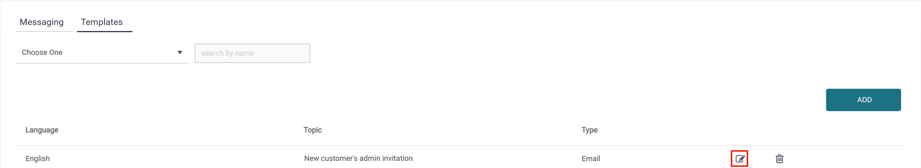 Click the edit icon next to New customer's admin invitation.