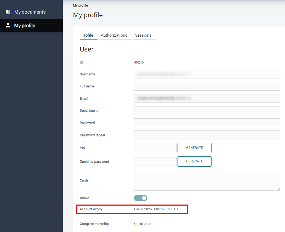 If the SAFEQ Cloud administrator set an expiration period, you will be able to see when your account expires in My profile section of SAFEQ Cloud Web UI.