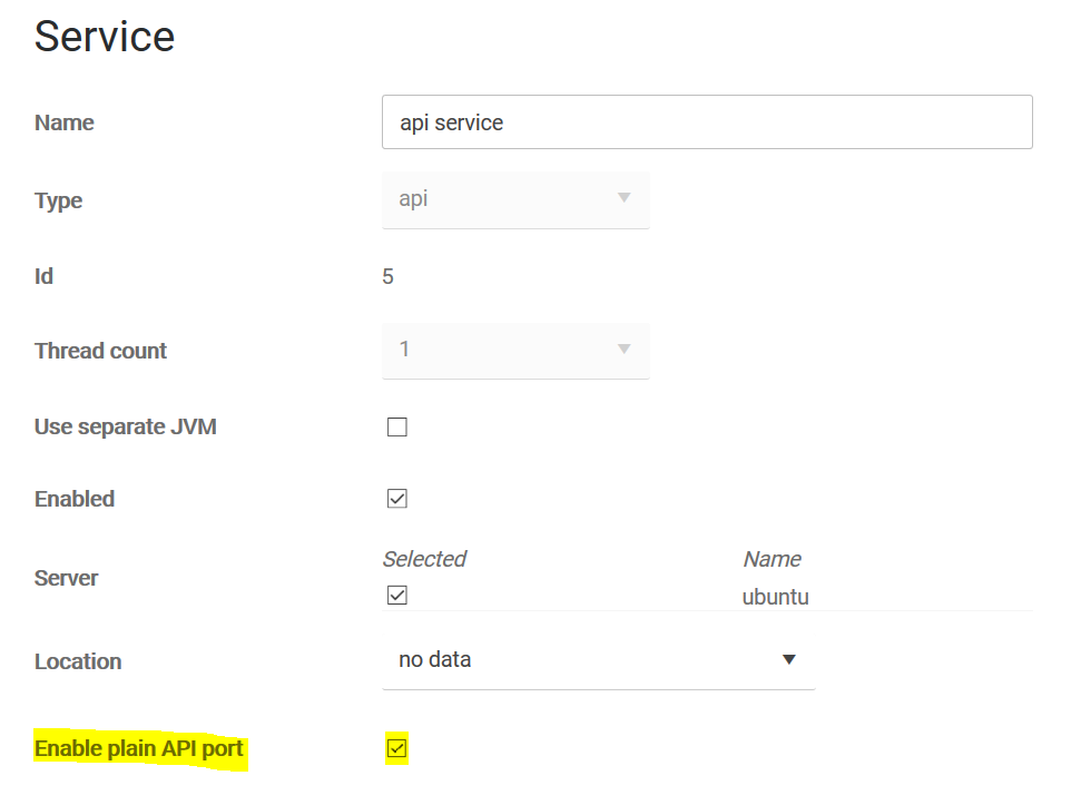 Edit SAFEQ Cloud API Service on primary/gateway as applicable to ‘Enable plain API port’ (optional – needed only if you want to use plain port)