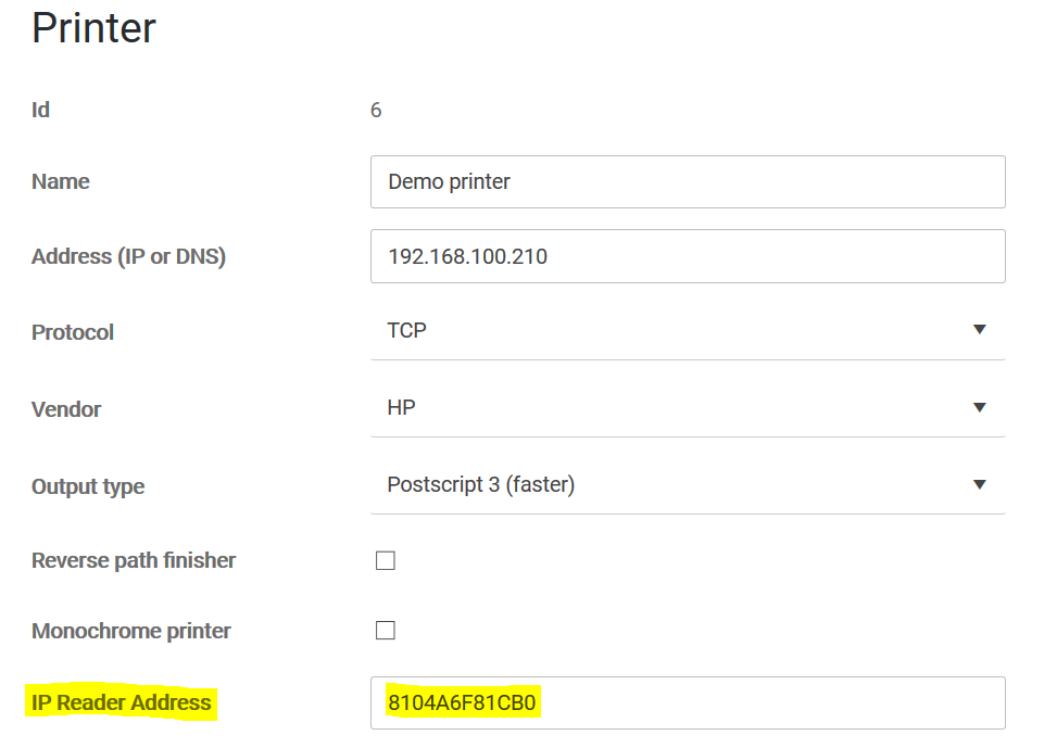 Edit Printer Settings in SAFEQ Cloud to add MAC ID of Ethernet 241 controller on Printer/MFD where ‘swipe-and-release’ feature has to be used