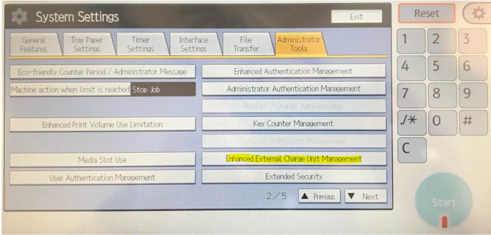Now, go to System Settings in Administrative interface on device. Navigate to Administrator Tools and press Enhanced External Change Unit Management