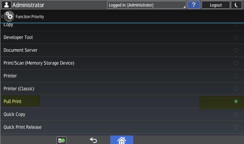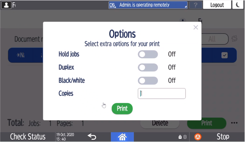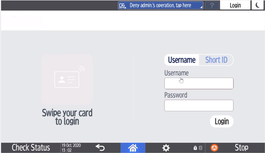 - When the Y Soft Ricoh SOP application is installed and configured log ins as device admin.