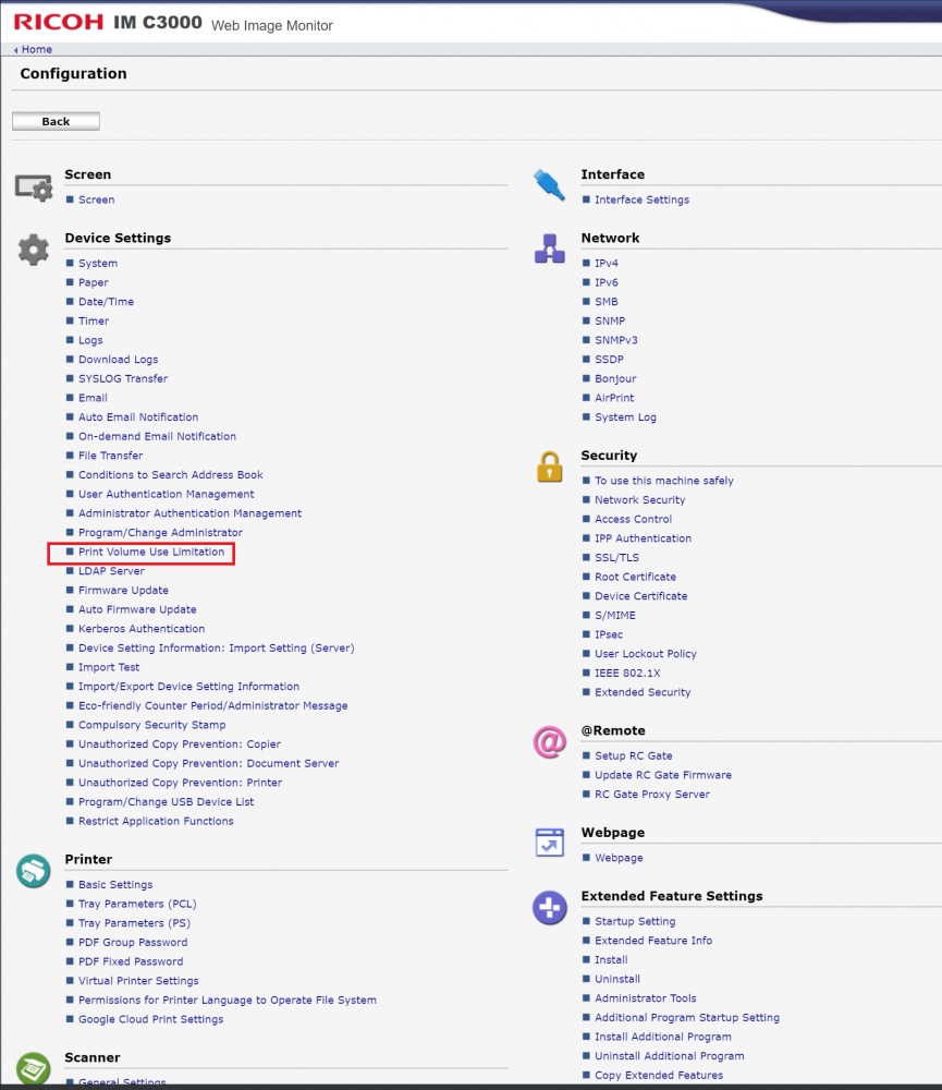 Note – Make sure though that you do not lock the print functions because the server will not be allowed to print. Also, Java should not be locked since that will prevent the users from unlocking the device