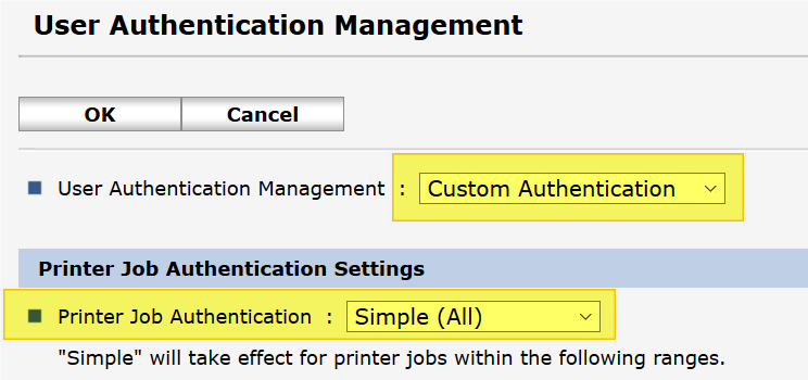 Select Custom Authentication in the dropdown. If not selected, it will not be possible to print and the job will spool and disappear from the Pull Print app without being printed. If the above setting in not visible for selection, please enable below.