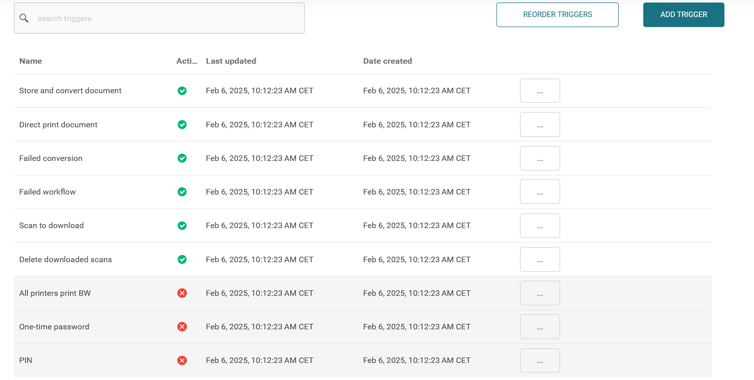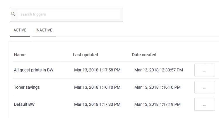 Triggers and Automation rules are handled in the SAFEQ Cloud Web UI under each account and office. Therefore, you can set up rules for an entire organization or a specific office within the organization.