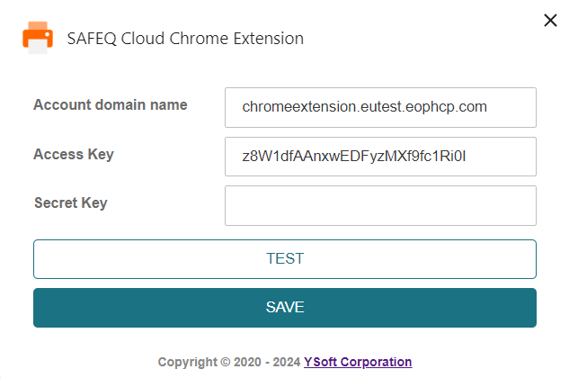 Access Key - The API key used in the communication with the SAFEQ Cloud server.
