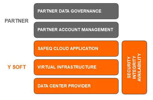 Y Soft and its Partners are jointly responsible for the security of their customers’ print infrastructure. SAFEQ Cloud can be hosted either by Y Soft, by a Partner (within a Data Centre selected by Partner), or by the Customer.