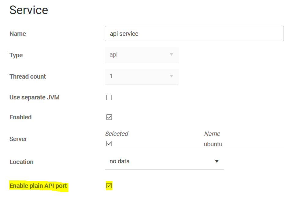 Edit SAFEQ Cloud API Service to ‘Enable plain API port’ (optional – needed only if you want to use plain port)