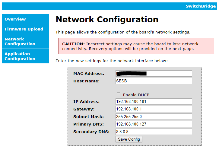 Open Switchbridge’s web page http://<ip address of switchbridge>/index.htm