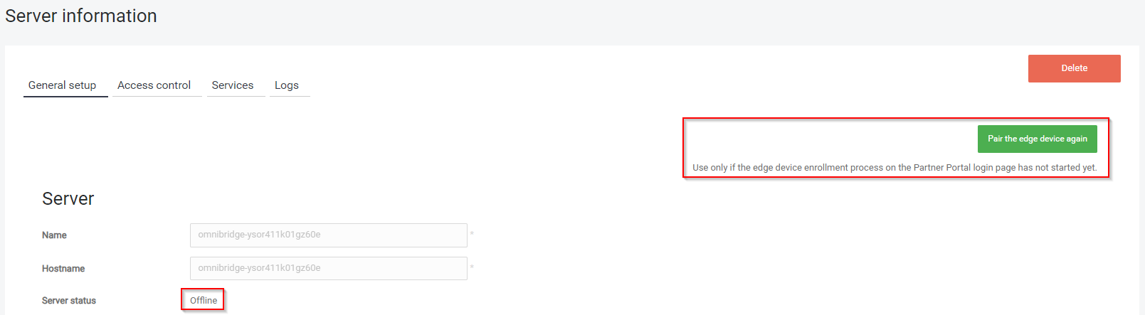 On the Server information page, click Pair the edge device again. Don't do this while the enrollment process is in progress. The process may take several minutes; therefore, starting another process will not work.