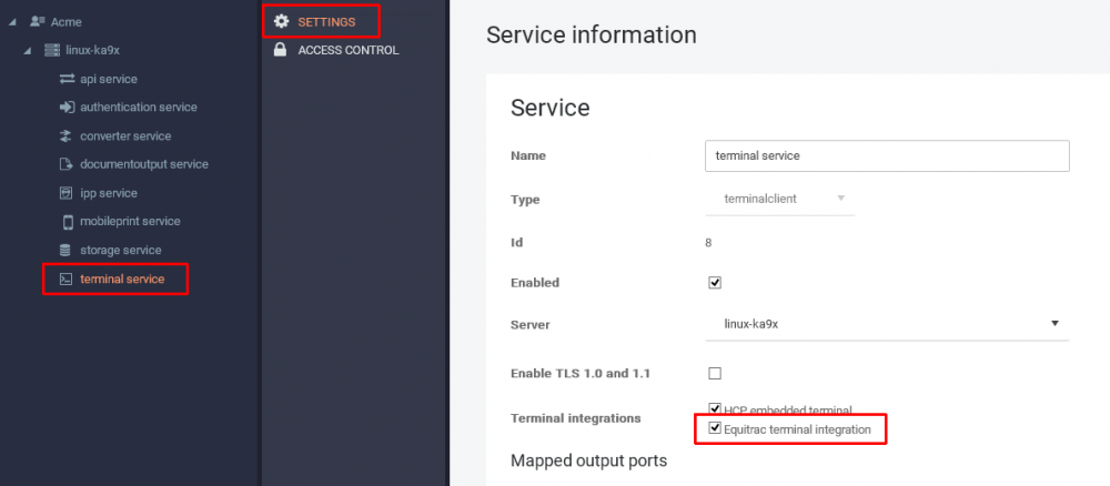Go to the Terminal Service to which the Equitrac server(s) will communicate and enable the Equitrac embedded integration