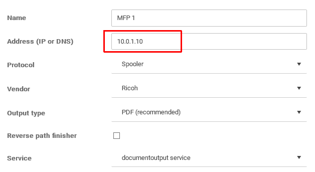 Configure an output port in SAFEQ Cloud with the hostname, DNS or IP address of the printer, matching the hostname, DNS or IP address used in Equitrac