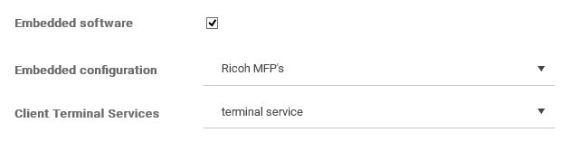 An YSoft SAFEQ Cloud output port configured with Embedded checked (and valid license) for each device in Equitrac