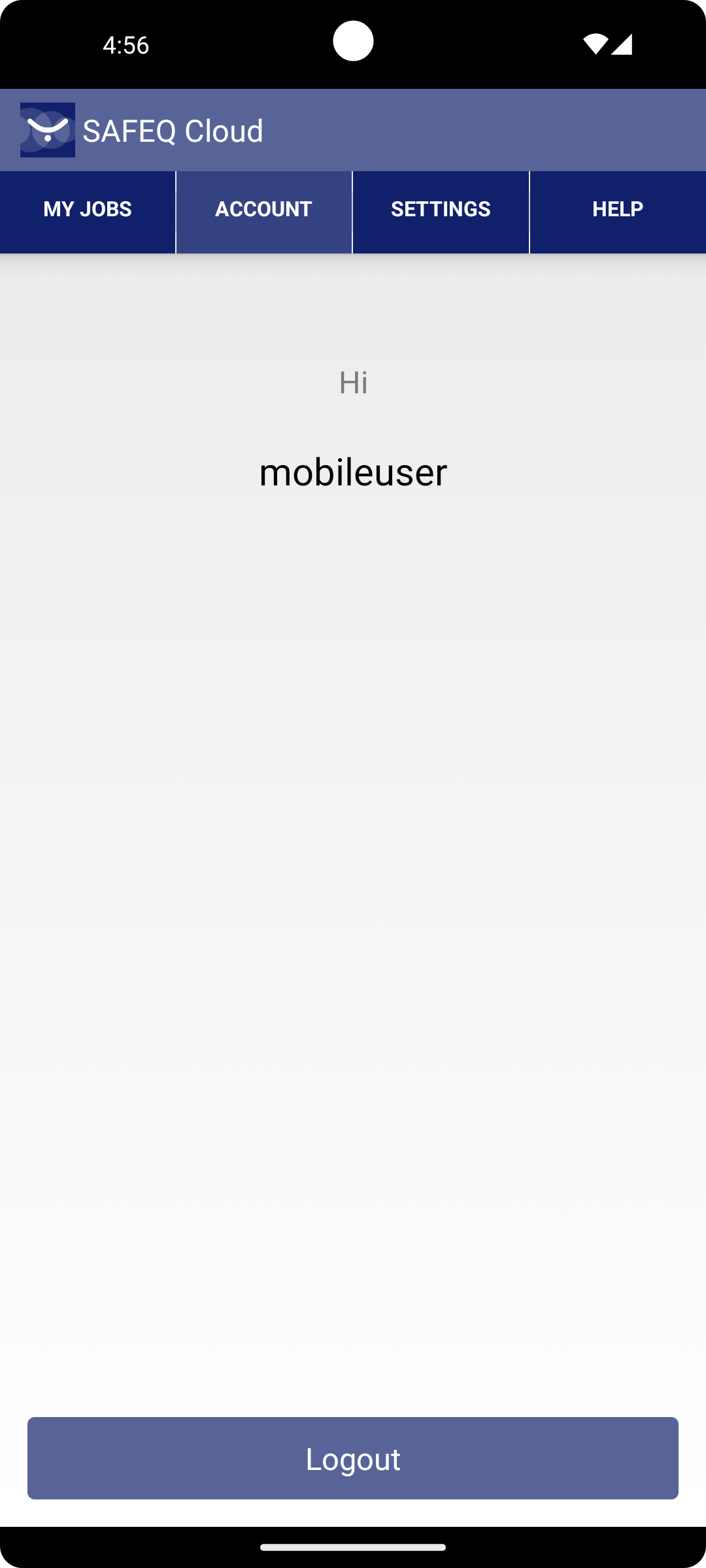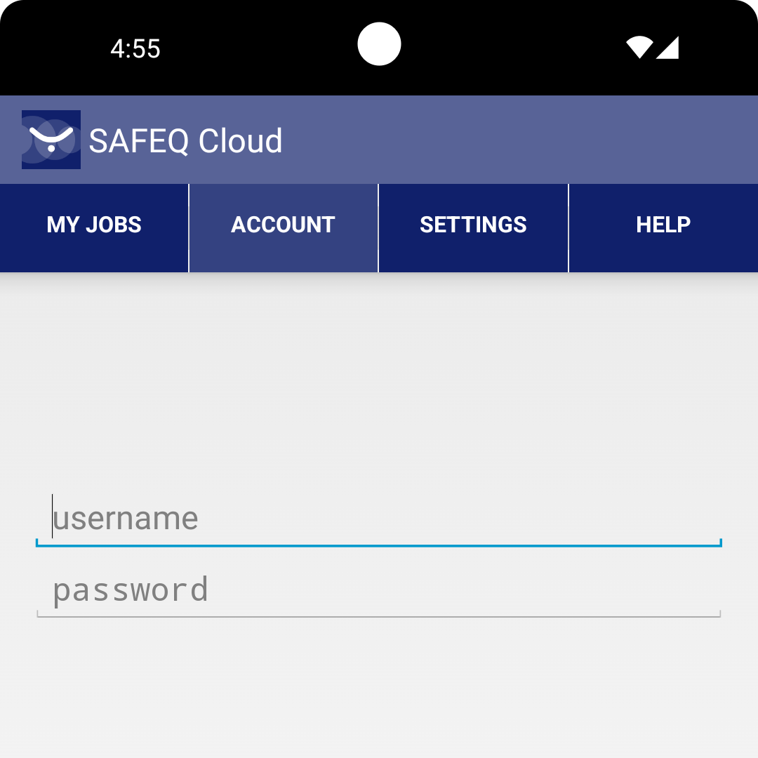 To log into the mobile app, tap Account and enter your SAFEQ Cloud credentials.