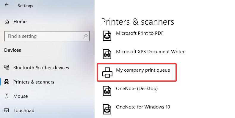 You will see all print queues (printers) that your administrator made available to you in your operating system. Select one of the queues in the print dialogue when printing a document from your chosen application.
