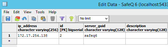 Find the record where spooler_controller_guid equals the GUID of your replaced SPOC (see step 4.c), then update the network_address value to match the new IP.