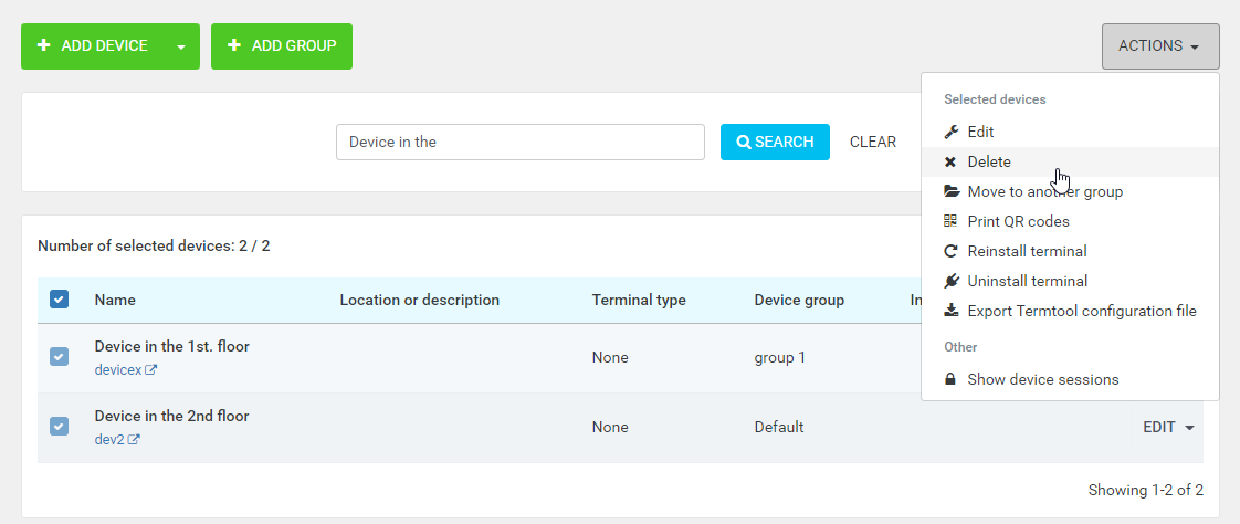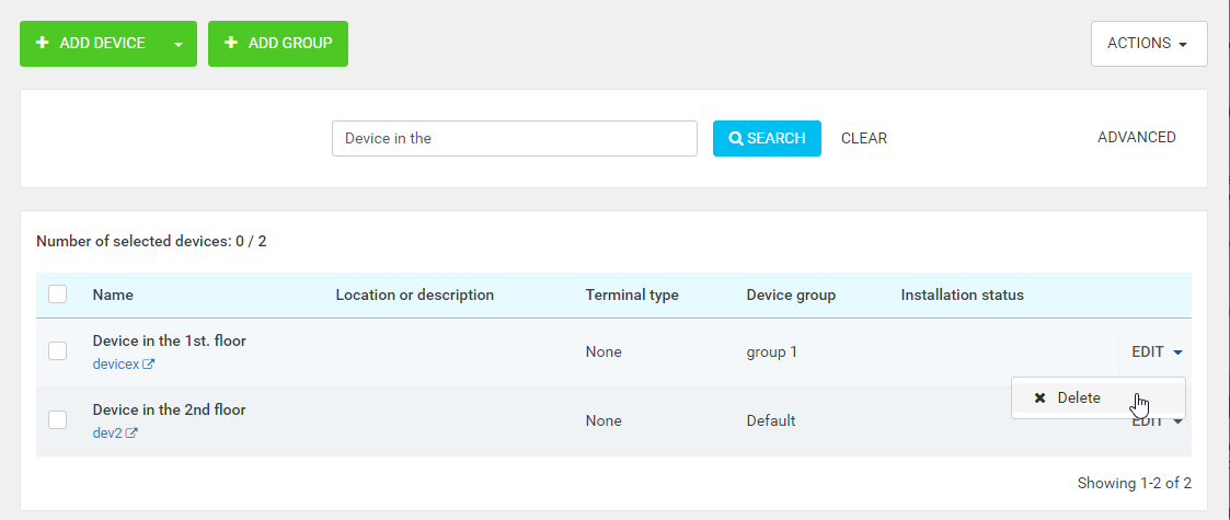 - Batch deletion of devices – a batch action for all selected devices on the device list page
