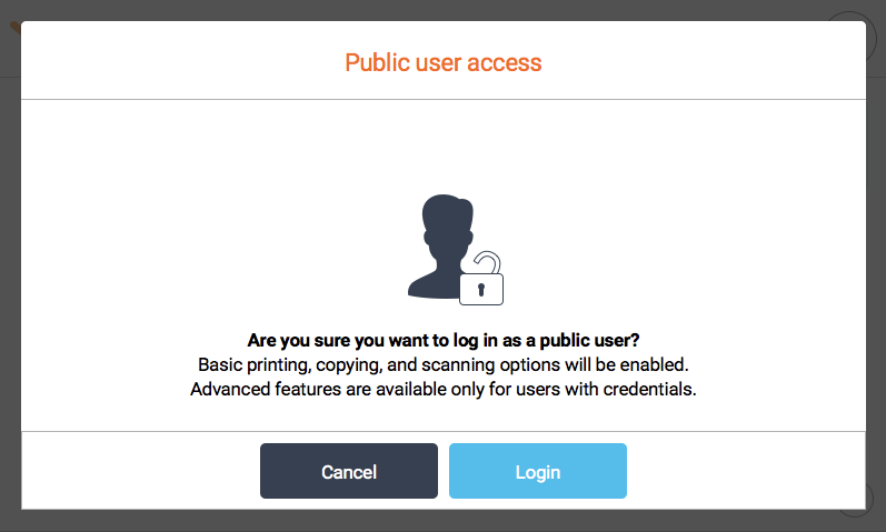 Public user can be used to allows print, scan, copy and fax to non-authenticated users.