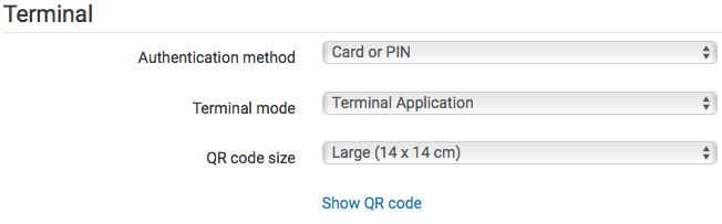 - The size of the QR Code can be changed during the installation or after clicking the Edit button. The size is located in the Terminal section.