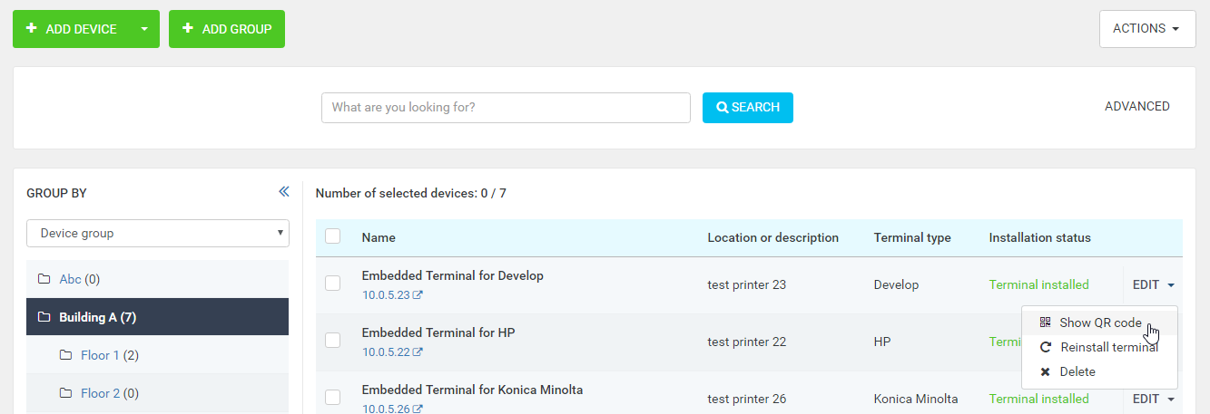 - A QR Code can be displayed by clicking Show QR Code in the device's menu.