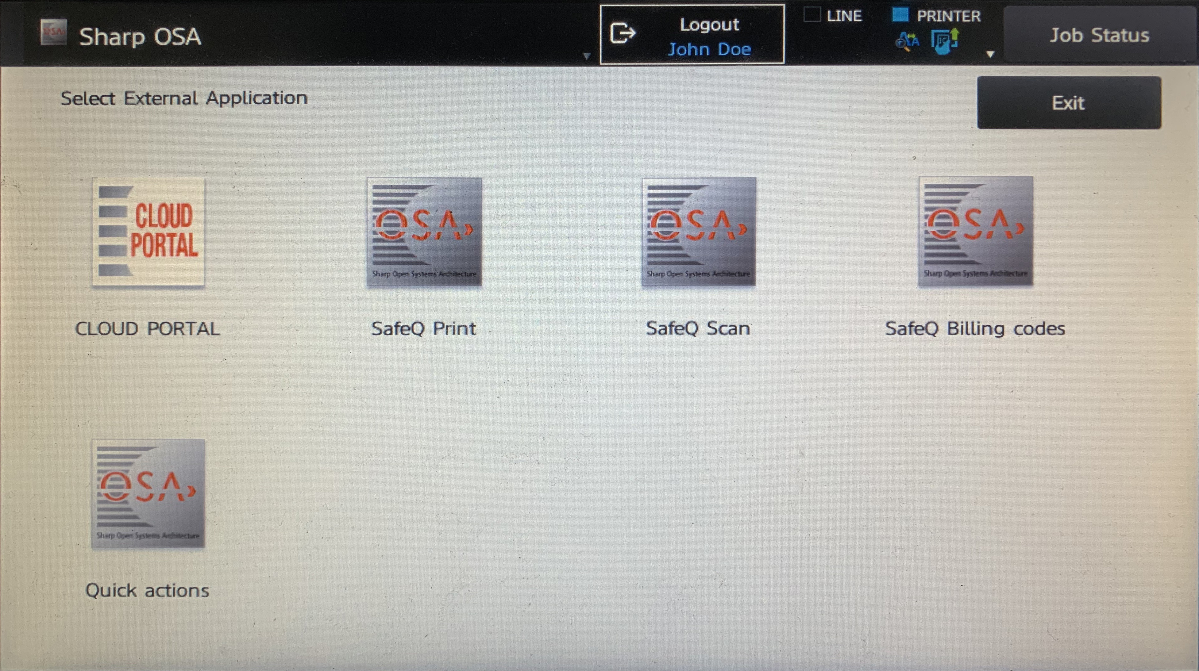 In the Main menu select Sharp OSA and then SafeQ Billing codes application.